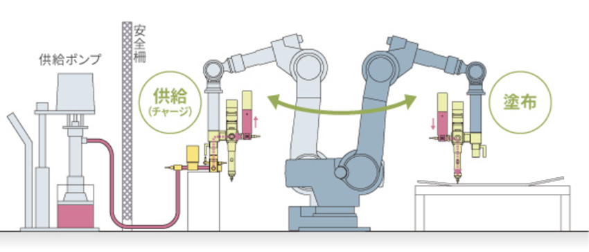 同社は現在も自動車製造工程における接着剤ディスペンサーを多く手掛けている。同社が接着剤に向き合ってきた歴史は、それ自体が自動車の進化の歴史と重なる。かつては金属製ガスケットが使用されていたものが、徐々に接着剤に置き換わり、現代ではカーエレクトロニクス部品にも多く使用されている。溶接レス、ボルトレスが進む中で、自動車の構造部分にも構造用接着剤が増加している。接着剤の用途は多岐に渡り、求められる技術力も非常にシビアになっている。