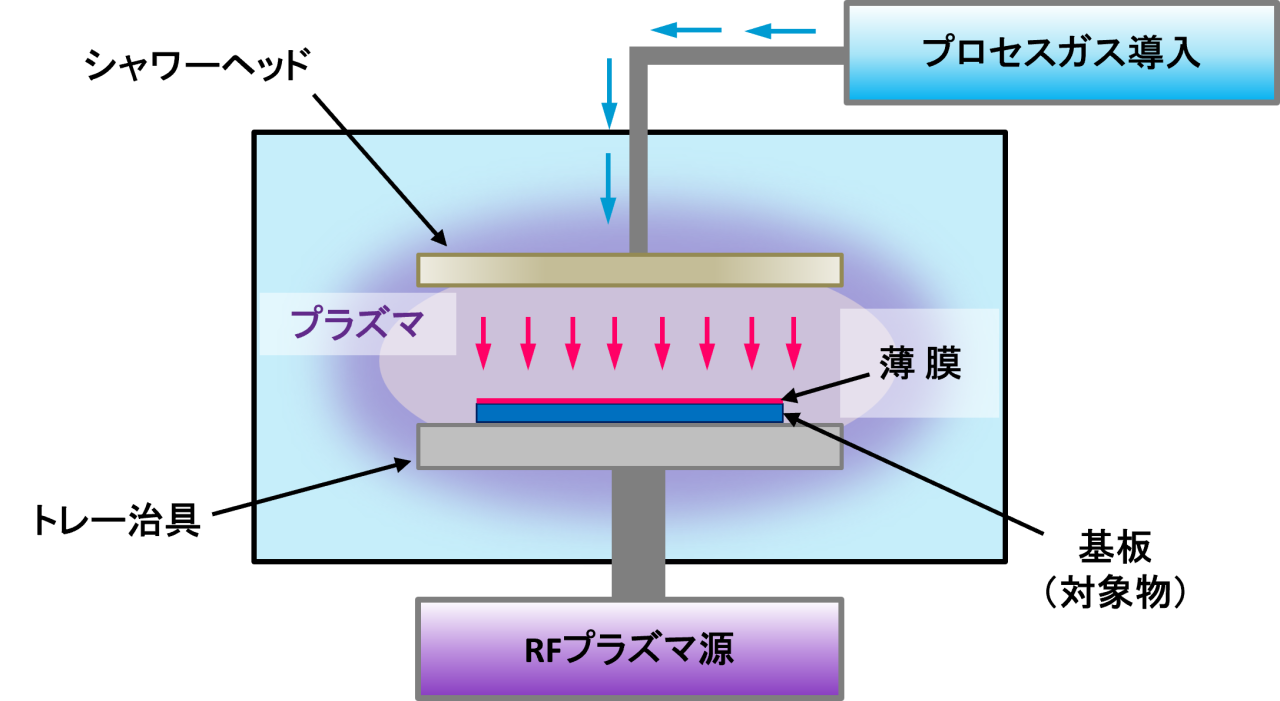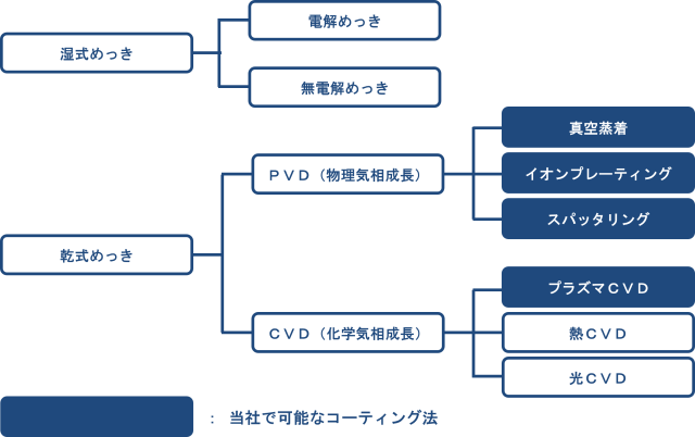 同社ではこのほかに、スパッタリングとプラズマCVDによる薄膜加工も取り扱っている。スパッタリングは材料にアルゴンイオンを衝突させ材料原子をたたき出すもので、はじき出された原子が直接堆積し被膜を作るため加工毎の再現性の高さに優れている。プラズマCVDは、プラズマが励起された装置内に被膜化したい材料を含むガスを導入し、化学反応を起こすことで薄膜を形成するというものだ。プラズマCVDでは1つ1つの粒子が細かくなるため付きまわり性が高いほか、低温で成膜できるのも大きな利点だ。いずれの成膜法にもメリットとデメリットが存在するため、同社では成膜法ごとのリスクも踏まえながらアイテムに合わせて最適なものを提案している。この豊富な選択肢が同社の大きな強みなのだ。
