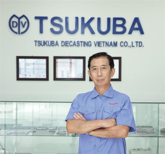 アルミニウムやマグネシウムなど軽金属ダイカストを主力とする筑波ダイカスト工業(東京都北区)は1951年創業。ベトナムでは1997年に操業を開始し、現地法人ツクバ・ダイキャスティング・ベトナム(TDV)は現在、3工場体制を構える。鋳造、加工、バリ取り、塗装までを自社内で一貫して担う生産基盤を軸に、EV化に伴う軽量化需要も取り込みながら受注領域を広げてきた。この30年の展開は、設備増強の軌跡にとどまらない。初期の顧客開拓、輸出と国内販売の両立、材料調達の多元化、金型・加工の現地協業、品質システムの整備、人材運用、そして営業ライセンス更新に象徴される制度対応。事業継続に必要な条件を一つずつ整えてきた過程でもある。現地法人社長の茂木秋平氏に、その歩みを聞いた。